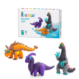 Hey Clay - Modelling Air-Dry Clay with Fun Interactive App - Ankylosaurus, Parasaurolophus, Therizinosaurus, Series Mega Dinos, 6 cans