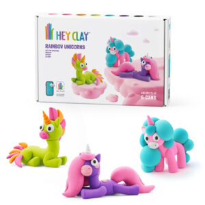 Hey Clay - Modelling Air-Dry Clay with Fun Interactive App - Brighty, Cloudy, Sparky, Series Rainbow Unicorns, 6 cans