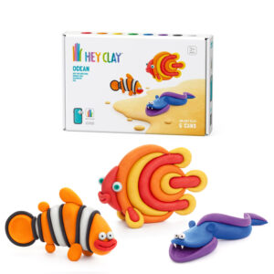 Hey Clay - Modelling Air-Dry Clay with Fun Interactive App - Clownfish, Discus Fish, Eel, Series Ocean, 6 cans