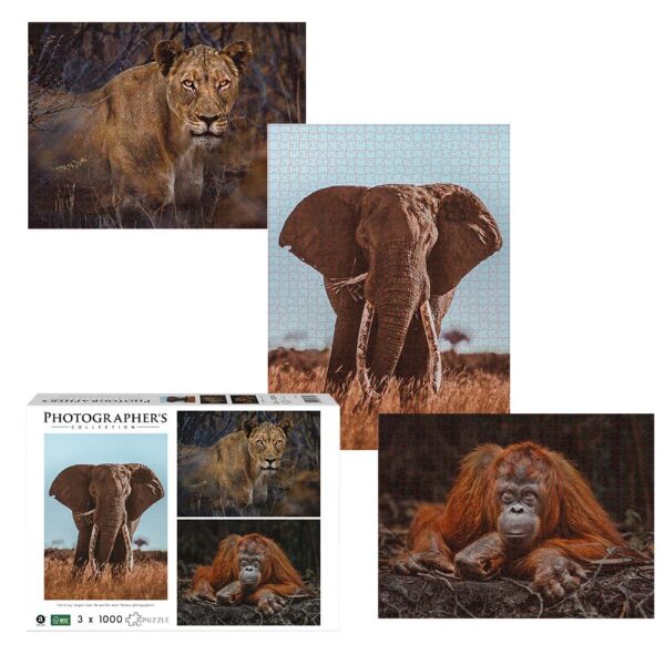 Ambassador – Photographers Collection: 3 x 1000 Piece Puzzle Bundle – Elephant, Lioness and Orangutan
