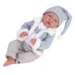 This 40cm baby doll combines the comfort of a soft cotton body with the realism of a vinyl head, hands, and feet. With 12 interactive sounds, this doll adds an extra level of engagement to playtime. Dressed in a cute outfit with a beanie, body suit, socks, and a pacifier with a chain, it’s ready for hours of nurturing fun.