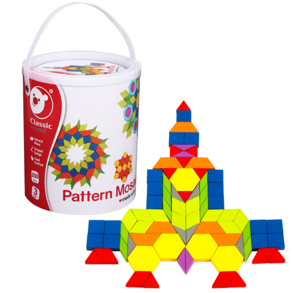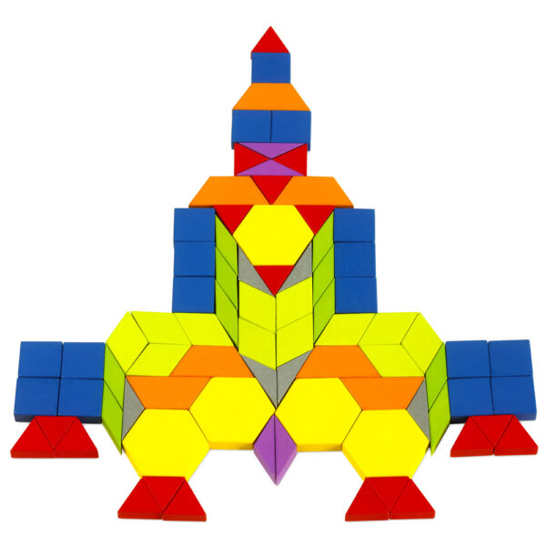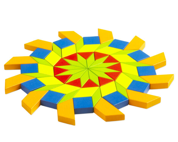 Wooden pattern blocks in various colours and shapes will stretch your child’s imagination!
