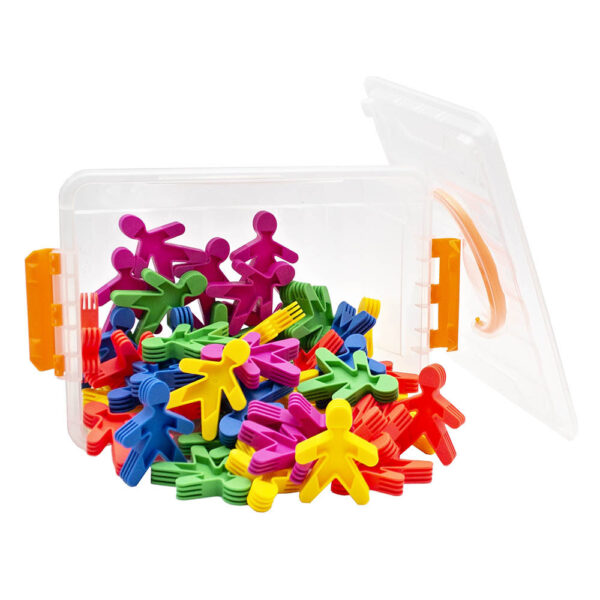 Our rubberised plastic grooved people interconnect for building pleasure and are ideal for developing fine motor skills, hand-eye coordination, spatial ability, colour recognition, sorting, imagination, and creativity.