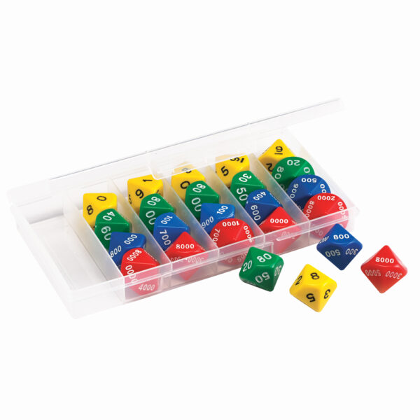 Generate place value numbers with this Jumbo Classroom Place Value Dice Set, comprising 6 sets of 10-sided place value dice.