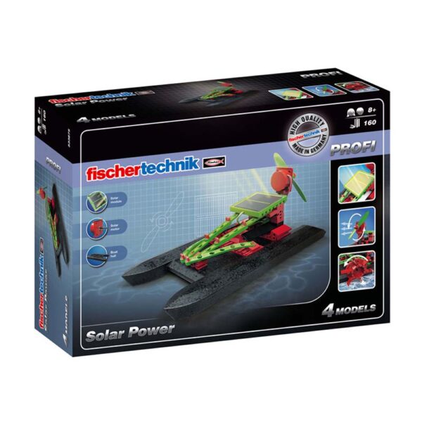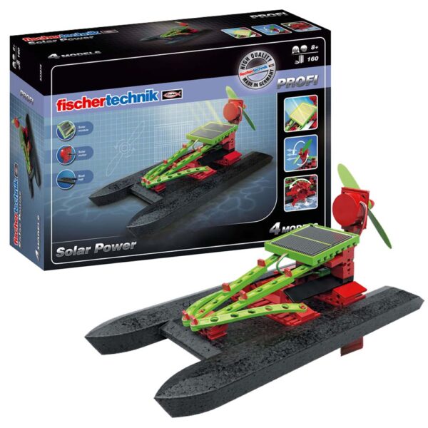 Renewable energy sources will play an increasingly significant role in future. A solar module generates electricity from the energy of the sun to move the solar boats and the solar car. Whether on water or land, the construction set is a learning-by-playing approach to solar power. Water fun is guarenteed with the floating Solar Catamaran and Paddle Steamer. The solar module and solar motor can also be used to make a solar vehicle and a ventilating fan.