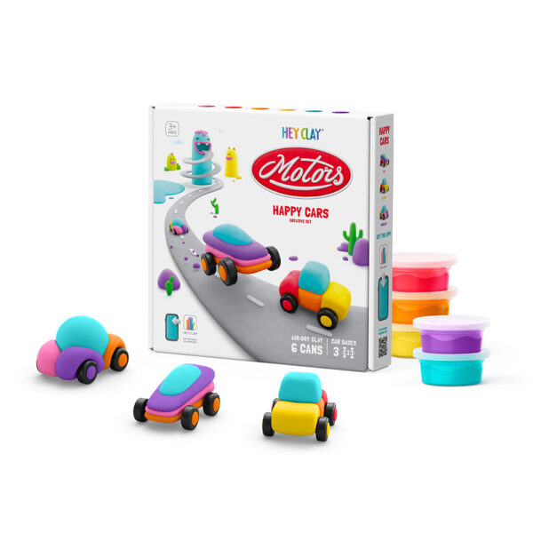 Hey Clay – Modelling Air-Dry Clay with Fun Interactive App – Happy Cars, series Motors, 6 cans