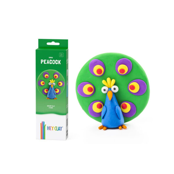 Hey Clay – Modelling Air-Dry Clay with Fun Interactive App – Peacock, series Birds, 3 cans