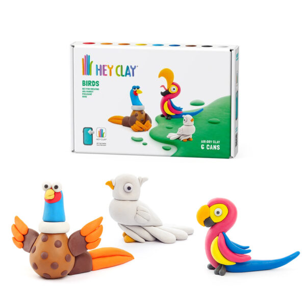 Hey Clay – Modelling Air-Dry Clay with Fun Interactive App – Pheasant, Ara Parrot, Dove, Series Birds, 6 cans