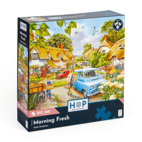 Go large with this Big 500 piece jigsaw puzzle! Illustrated by talented artist Keith Stapleton, our Morning Fresh jigsaw features extra-large puzzle pieces which are easier to handle and slot into place. The Big 500 range is a perfect family activity, as the chunky jigsaw pieces enable all ages to join in and work together. All of our Big 500 piece puzzles are sustainably made from premium quality FSC® Certified board, promising a satisfying and seamless assembly experience. Completed puzzle dimensions: 48 x 69cm.