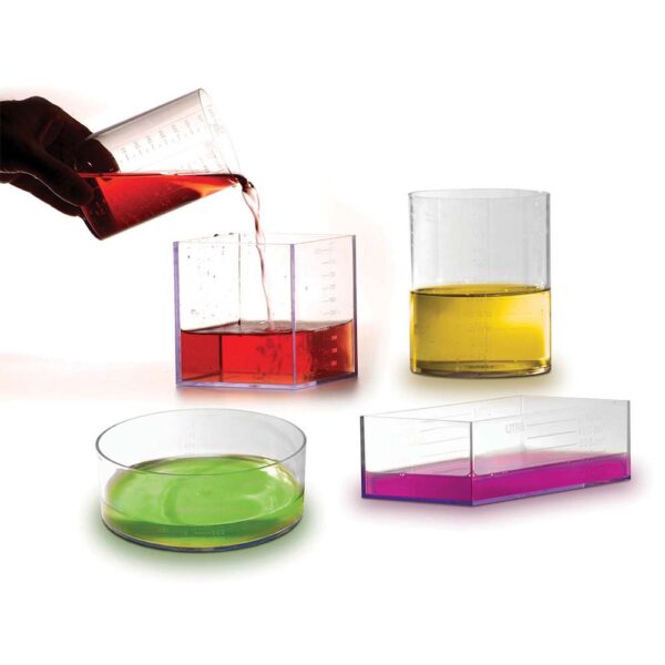 Fantastic when learning the concept of measurement and volume, this Litre Set from Invicta Education includes 5 containers in 5 different shapes. Four of the containers hold 1 litre each, and the fifth container holds 1/2 a litre. Each is clearly marked so that smaller amounts can be measured.