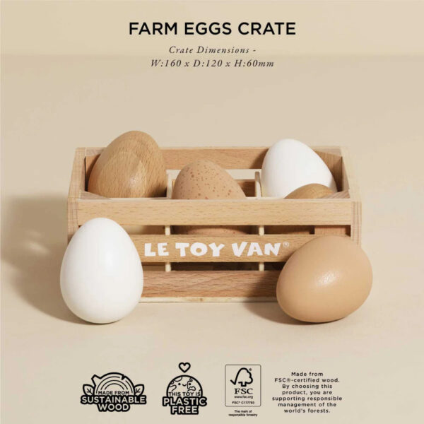 Le Toy Van – Pretend & Play – Wooden Farm Eggs Food Crate – 7 Pcs