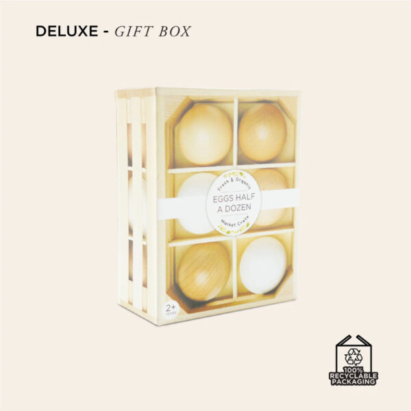 Packed with 6 chunky, solid rubberwood eggs, this charming set invites imaginative play and encourages little ones to explore the world of food groups. All housed in a sturdy, eco-friendly wooden crate, these farm-fresh eggs are an ideal tool for teaching children about where their food comes from.