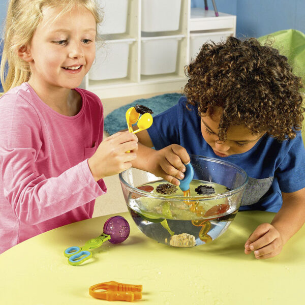 Find 4 of our best fine motor skills toys for 3 year olds and up with this fun, convenient set that’s perfect for a wide range of hands-on activities. Use the Gator Grabber Tweezers™, Handy Scoopers™, Twisty Droppers™, and Squeezy Tweezers™ in the classroom or at home to help young children practise a range of fine motor skills.