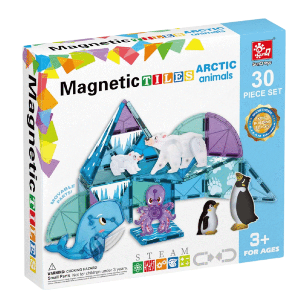 Explore the icy wonders of the Magnetic Arctic Adventure Set! This exciting set includes 25 magnetic tiles and 5 magnetic Arctic animals, allowing kids to create their own frozen landscape. Designed to enhance creativity, problem-solving, and hands-on skills, this set lets little adventurers build snowy mountains, icy caves, and frozen lakes while imagining thrilling polar expeditions. With strong magnetic connections and vibrant, durable pieces, it’s perfect for open-ended play and is compatible with other major magnetic tile brands.