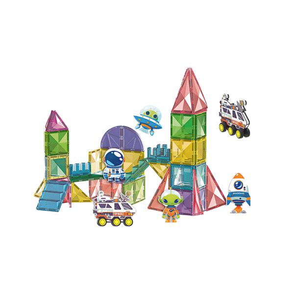 Blast off into an intergalactic adventure with the Magnetic Space Adventure Set! This exciting set includes 25 magnetic tiles and 5 magnetic space-themed pieces, featuring a rocket, astronaut, UFO, rover, and an alien, allowing kids to explore the wonders of space. Designed to enhance creativity, problem-solving, and hands-on skills, this set lets little explorers build space stations, launch pads, and cosmic landscapes. With strong magnetic connections and vibrant, durable pieces, it’s perfect for open-ended play and is compatible with other major magnetic tile brands.