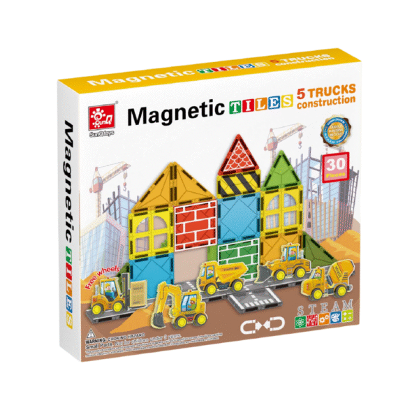 Get ready for endless building fun with the Magnetic Construction Site Set! This exciting set includes 25 magnetic tiles and 5 magnetic construction vehicles, allowing kids to create their own dynamic worksite. Designed to enhance creativity, problem-solving, and hands-on skills, this set lets little builders construct, combine, and explore different structures. With strong magnetic connections and vibrant, durable pieces, it’s perfect for open-ended play and is compatible with other major magnetic tile brands.