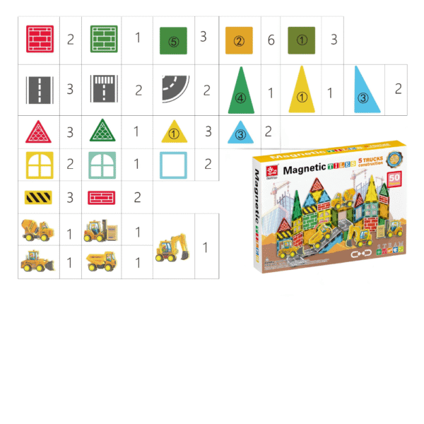 Magnetic Tiles – Truck Construction Set – 50 Pieces