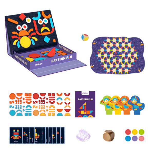 With loads of geometric magnetic images, children can compose them into 20 patterns as the activity cards show, or use their imagination to create their own.