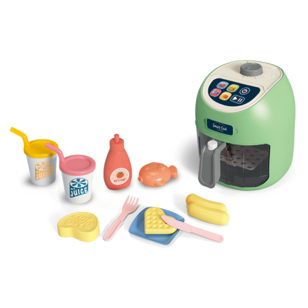 Pretend & Play Air Fryer Set with Lights, Sounds & Colour Changing Food – Green