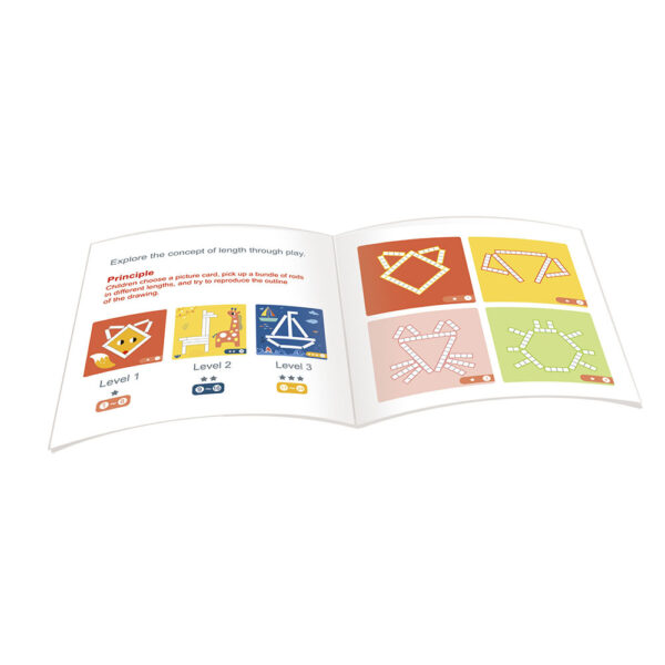 Children choose a picture card, pick up a bundle of rods in different lengths and try to re-produce the outline of the image featured on the card.