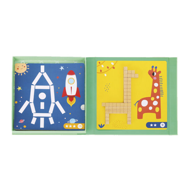 Not only will patterning and sequencing be improved through play, but children start familiarizing themselves with different lengths and the relation they have to one another in order to complete a picture.