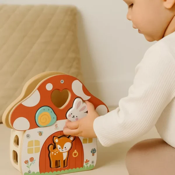 The Shape Sorter Mushroom House invites children into a whimsical world of learning and imagination. Designed as a charming mushroom-shaped house, it encourages children to match shapes while enjoying playful woodland characters. Shape sorting supports early cognitive development, problem-solving, and hand-eye coordination.