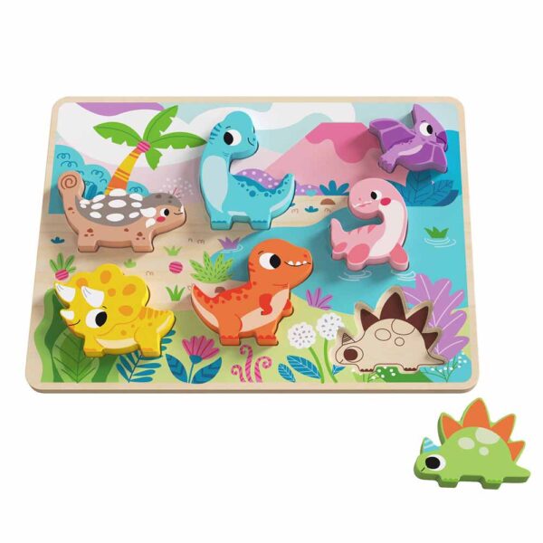 Challenge your little one with this bright and colourful Chunky Dinosaur Puzzle from TookyToy.