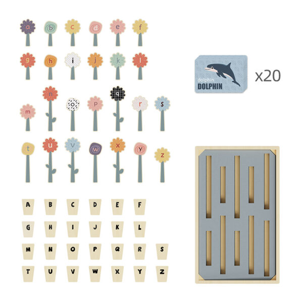 This Montessori-inspired wooden spelling game is designed to captivate the minds of young learners. With 26 wooden uppercase and 26 lowercase letters shaped like colourful garden flowers, plus 20 double-sided waterproof flashcards featuring delightful animal illustrations, ABC Flowers is more than just a toy. It’s a comprehensive tool for literacy and word recognition, ideal for both homeschooling environments and classroom settings.