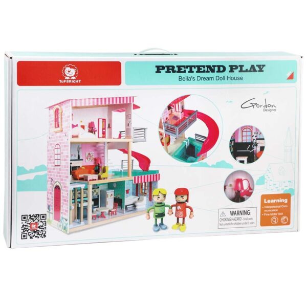 With 18 pieces of furniture and 2 dolls, this dollhouse satisfies every child’s princess dreams and allows for hours of creative and imaginary play.