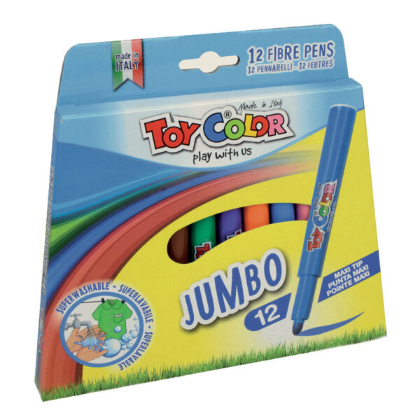 Toy Color – Jumbo Fibre Markers – 5mm Tip – 12 Colours – 12pcs